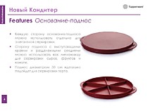 - Дизайнеры предложили две разные стороны у основания. С одной стороны оно ровное и выполняет функции подноса. С другой стороны основание углублено на 2,5см. и секторами разделено на шесть ровных частей, которые помогают удобно разместить разные виды пирожных или другую выпечку.